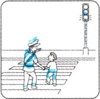 mustn’t cross; wait; green; can cross; means; can; turn left