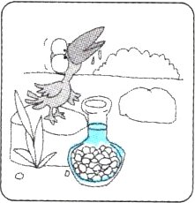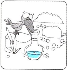 提示词:crow(乌鸦),bottleneck(瓶颈),pick up,stone(石头),come up