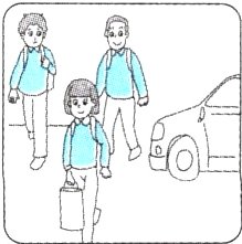First they see a “STOP” sign. They wait on the pavement and look left-right-left and then cross the road. Next they see a railway crossing. They cross it carefully. Then they come to a busy road, there are some traffic lights. Oh, what should they do? They must look at the traffic lights and wait for the green man and then cross the street. At last, they come to a road without a zebra crossing, they cross the road together. Finally they see the library in front of them. That is a fun walk. They are happy because they can read some books now.