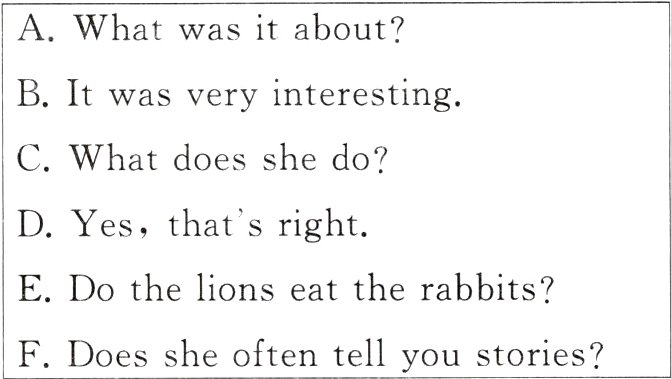 ( )4. The fox didn’t go into the cave because he didn’t believe(相信) the lion.