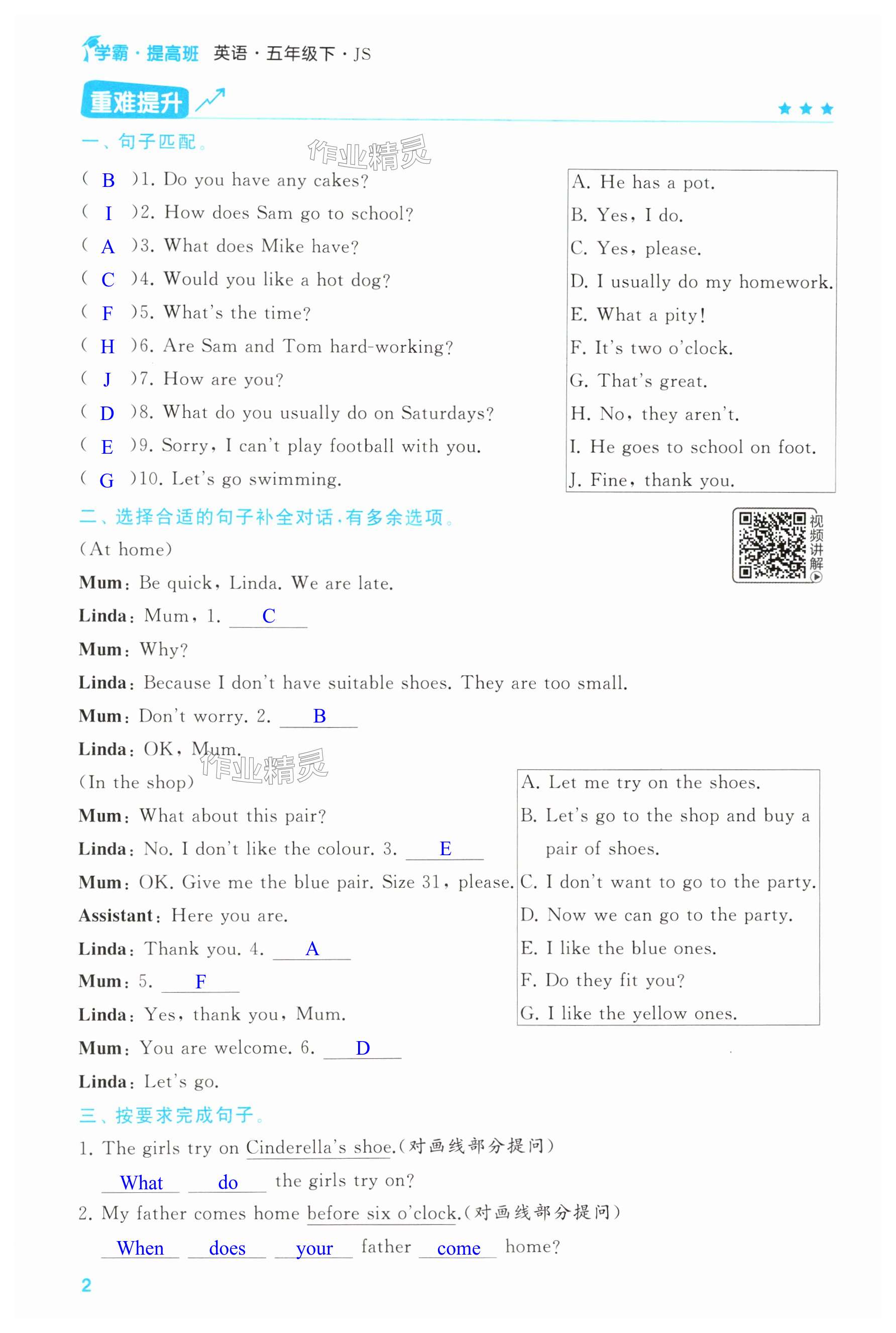 注:目前有些书本章节名称可能整理的还不是很完善,但都是按照顺序排列的,请同学们按照顺序仔细查找。练习册 2025年经纶学典提高班五年级英语下册译林版 答案主要是用来给同学们做完题方便对答案用的,请勿直接抄袭。