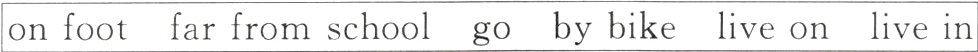 1.going 2.on foot 3.far from school 4.by bike 5.lives on 6.live in