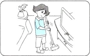 1. Where; in; What; doing; sweeping 2. in; isn't; bedroom; sleeping; is; about; sleeping