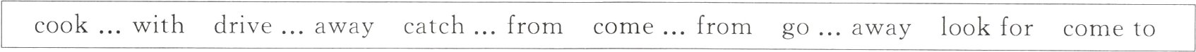 cook ... with drive ... away catch ... from come ... from go ... away look for come to