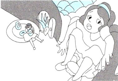 ... Alice goes back to the table and sees a little bottle on it. A note on the bottle says “DRINK ME”. Alice opens the bottle and drinks a little. Then she feels a little ill. She looks down and sees herself shrinking. Soon Alice is small enough to go through the door, so she decides to enter the garden. When she walks towards the door, she forgets about the key. Alice has to go back to the table, but now she is too small to reach the key. Then she sees a piece of cake under the table. A note on the cake says “EAT ME”. Alice takes a bite and grows. But she grows too much. She is afraid and starts to cry.
