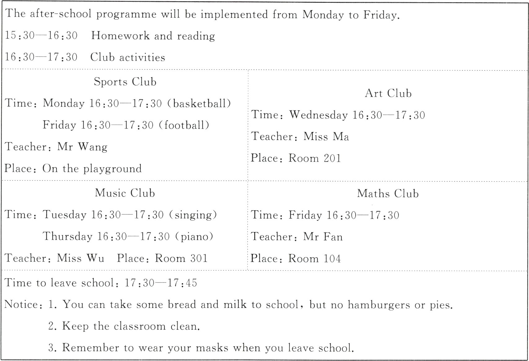 ( )1. The after - school programme is .