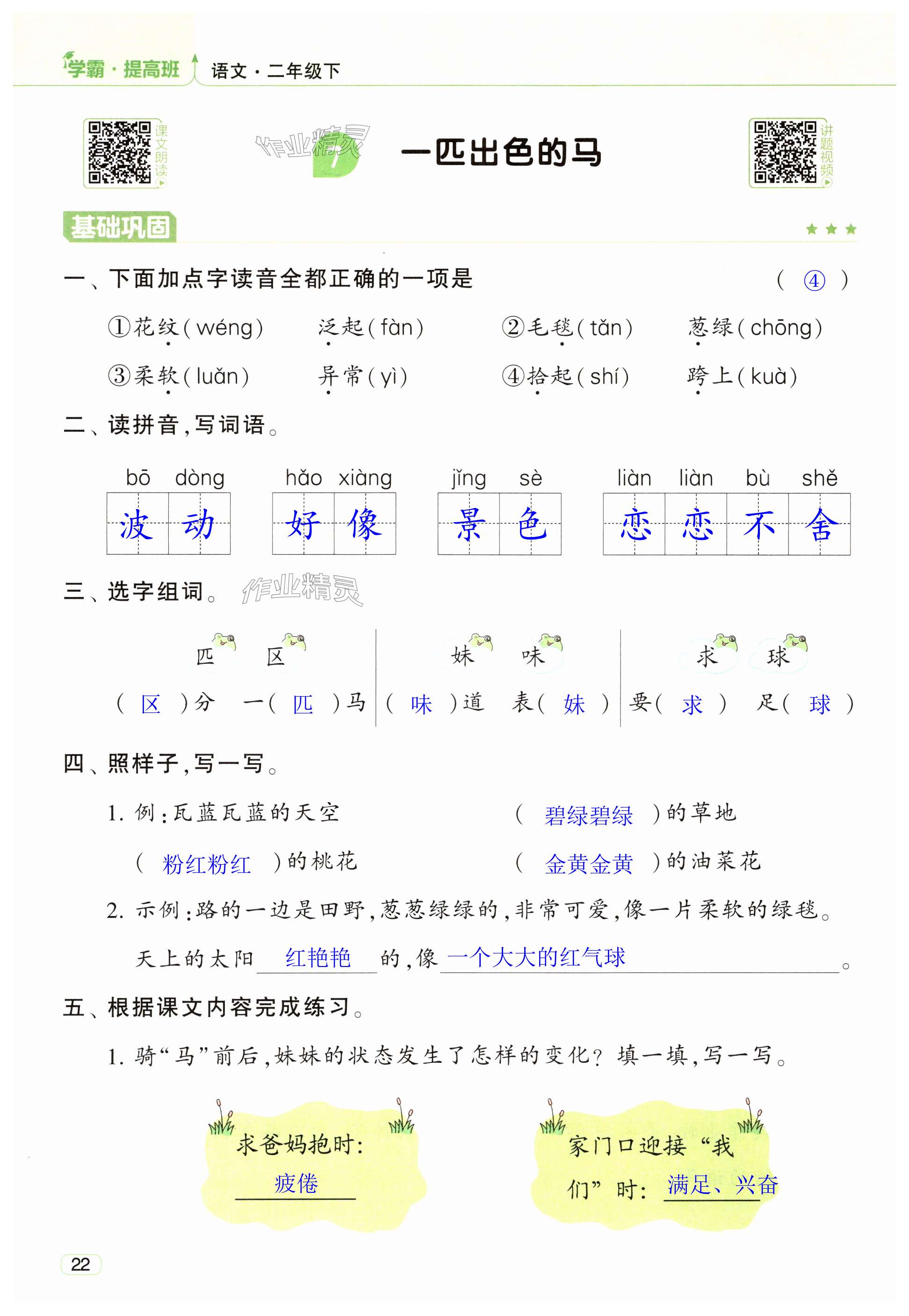 注:目前有些书本章节名称可能整理的还不是很完善,但都是按照顺序排列的,请同学们按照顺序仔细查找。练习册 2025年经纶学典提高班二年级语文下册人教版江苏专版 答案主要是用来给同学们做完题方便对答案用的,请勿直接抄袭。