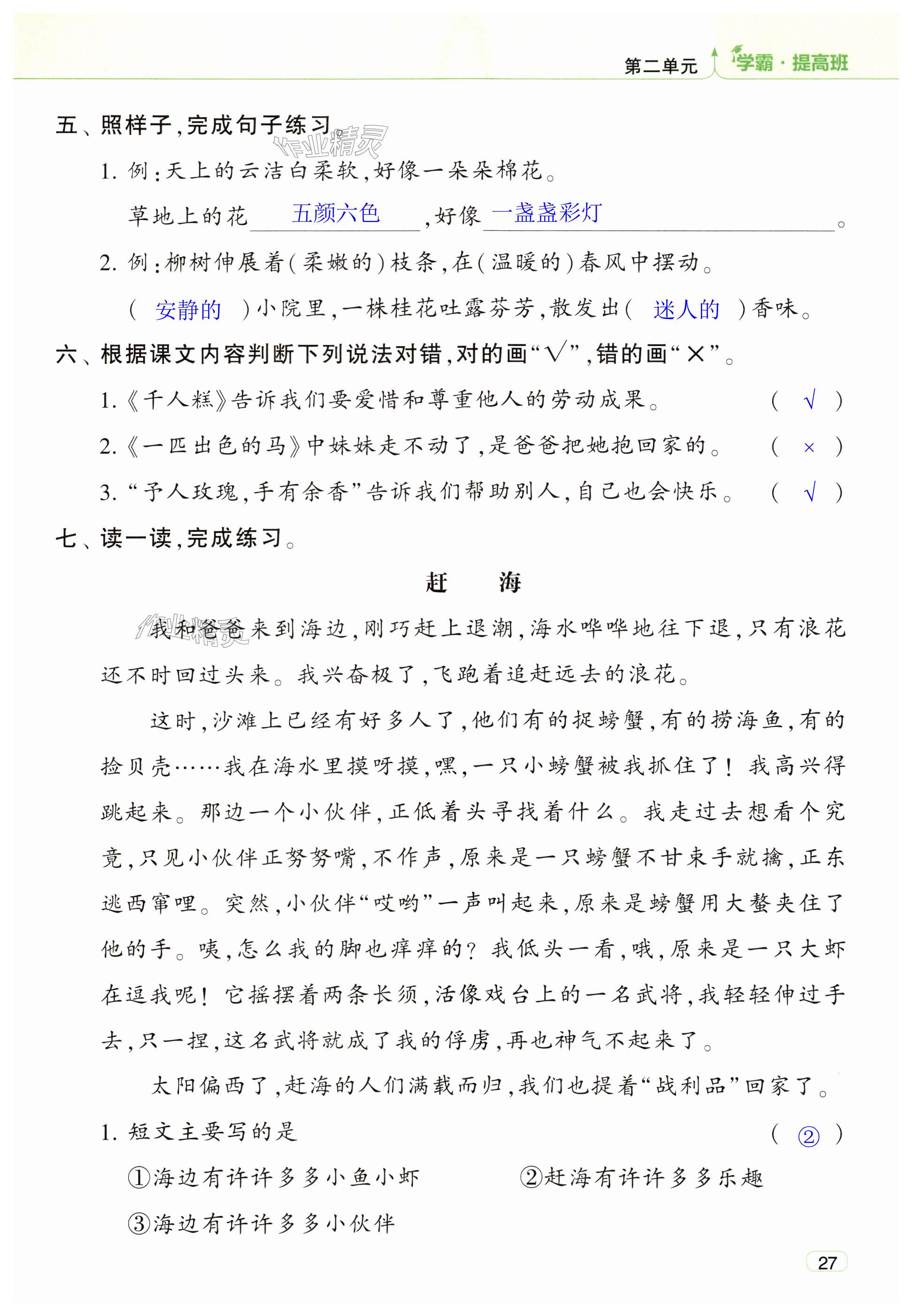 注:目前有些书本章节名称可能整理的还不是很完善,但都是按照顺序排列的,请同学们按照顺序仔细查找。练习册 2025年经纶学典提高班二年级语文下册人教版江苏专版 答案主要是用来给同学们做完题方便对答案用的,请勿直接抄袭。