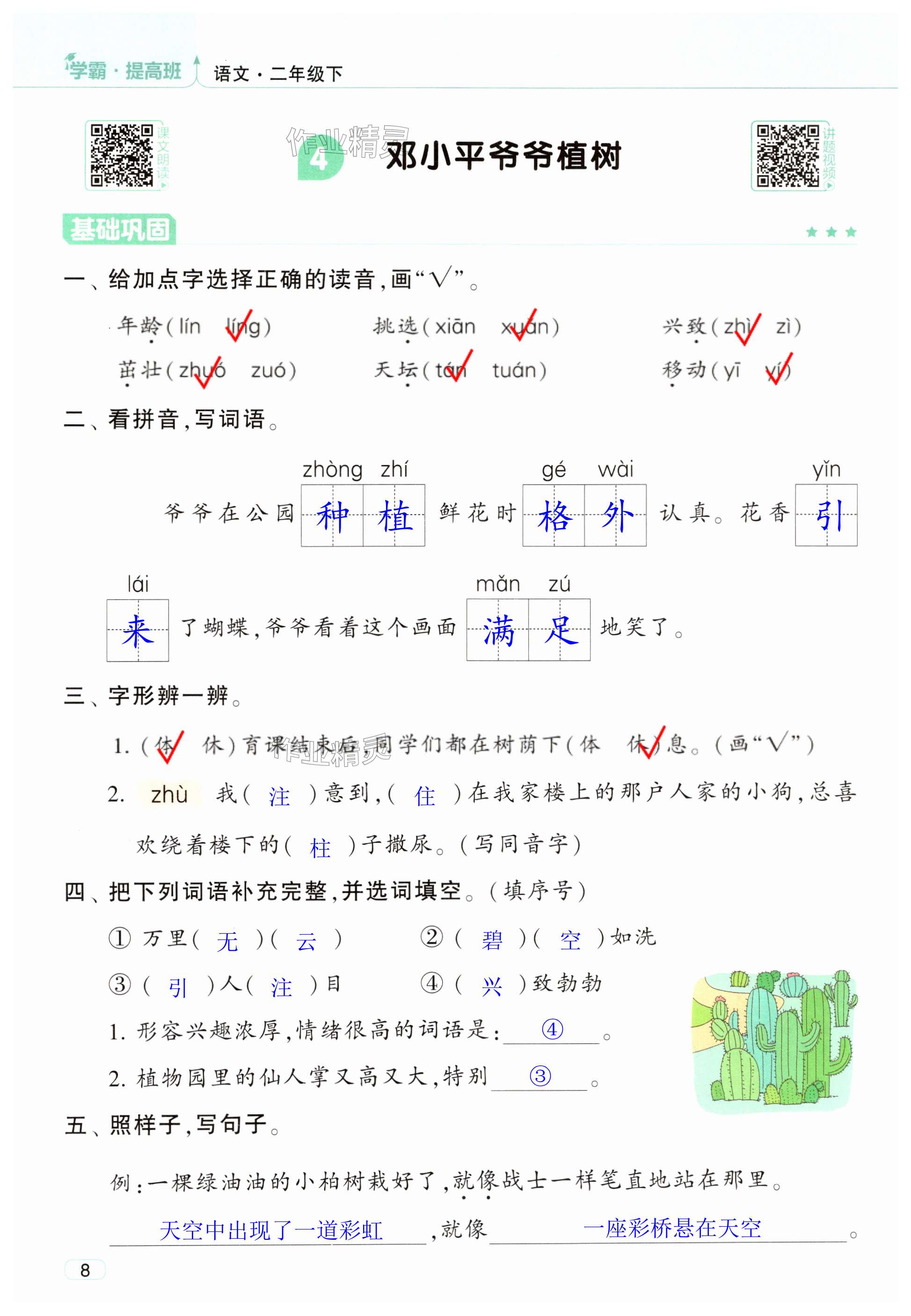 注:目前有些书本章节名称可能整理的还不是很完善,但都是按照顺序排列的,请同学们按照顺序仔细查找。练习册 2025年经纶学典提高班二年级语文下册人教版江苏专版 答案主要是用来给同学们做完题方便对答案用的,请勿直接抄袭。