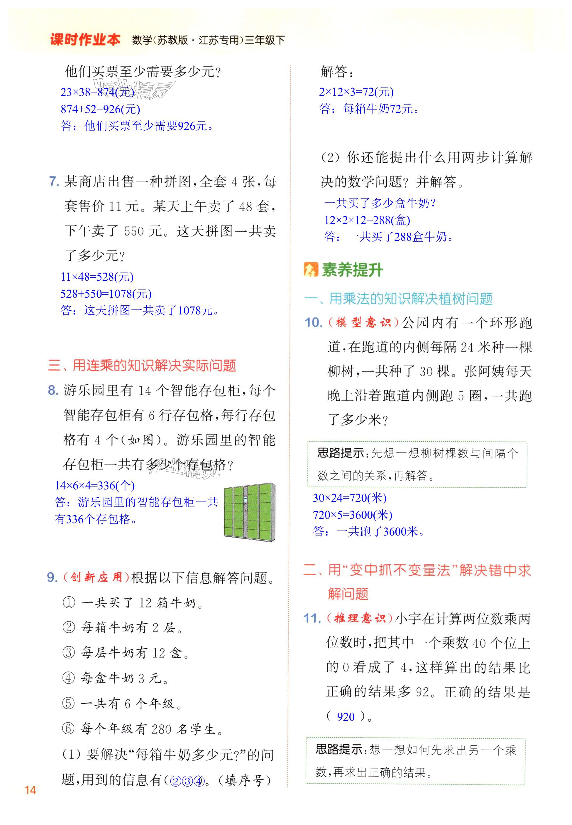 注:目前有些书本章节名称可能整理的还不是很完善,但都是按照顺序排列的,请同学们按照顺序仔细查找。练习册 2025年通成学典课时作业本三年级数学下册苏教版苏州专版 答案主要是用来给同学们做完题方便对答案用的,请勿直接抄袭。