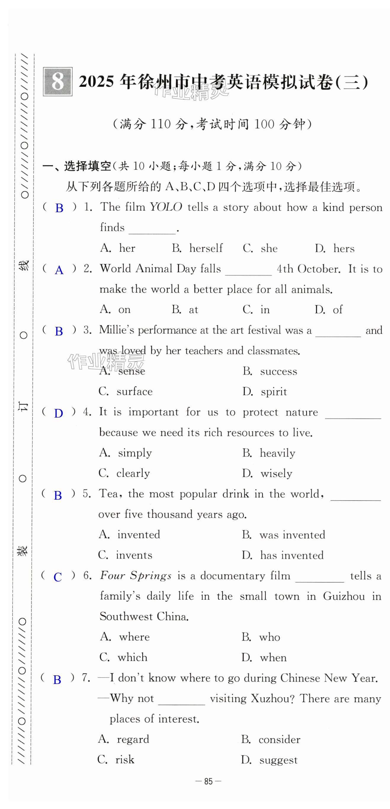 注:目前有些书本章节名称可能整理的还不是很完善,但都是按照顺序排列的,请同学们按照顺序仔细查找。练习册 2025年徐州市中考总复习一卷通历年真卷精编英语 答案主要是用来给同学们做完题方便对答案用的,请勿直接抄袭。