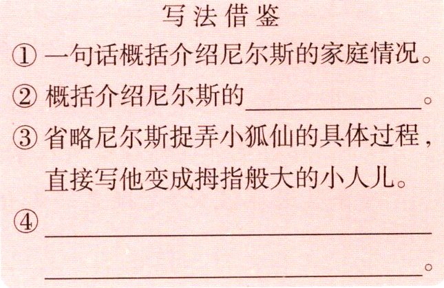 ③ 省略尼尔斯捉弄小狐仙的具体过程,直接写他变成拇指般大的小人儿。
