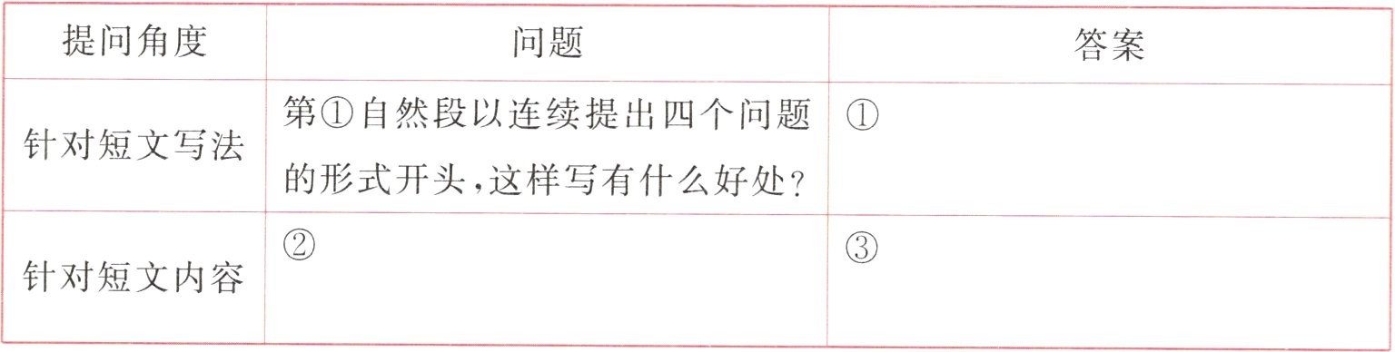 5. 语文要素 阅读短文后,请你完成下面的问题清单。