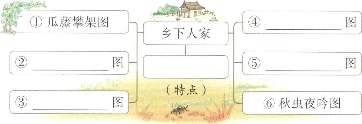 .和乡下人家一起,绘成了一幅自然、和谐的田园风景画。② 秋天到了,纺织娘寄住在他们屋前的瓜架上。月明人静的夜里,