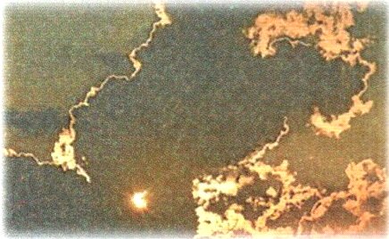 然而太阳在黑云里放射的光芒,透过黑云的重围,替黑云镶了一道发光的金边。后来太阳才慢慢地冲出重围,出现在天空,甚至把黑云也