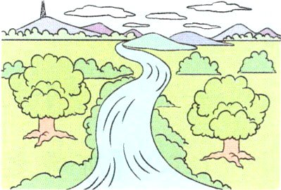 例:小河清清的,弯弯的,像一条透明的丝带。