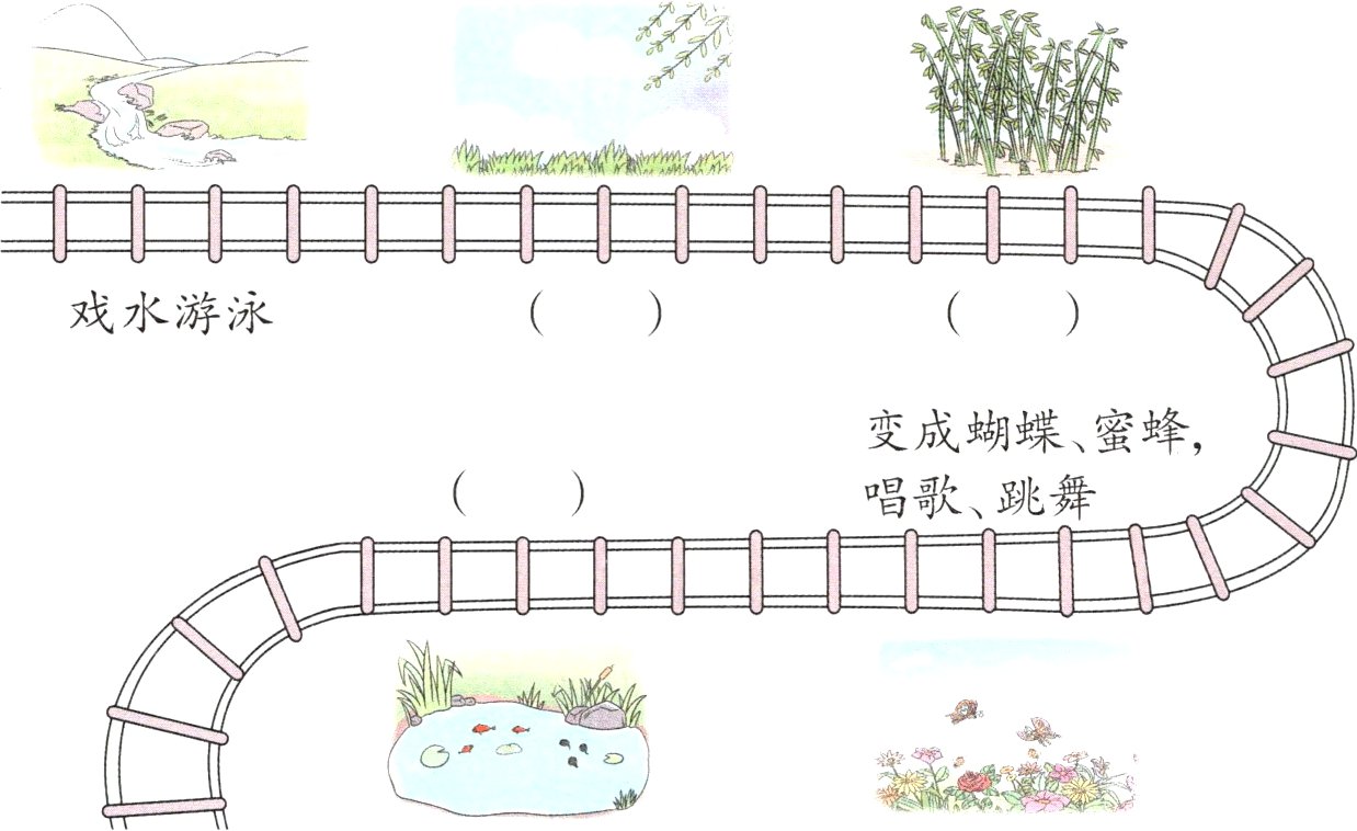 ① 变成小鱼、蝌蚪,摇尾畅游 ② 和麦苗打闹