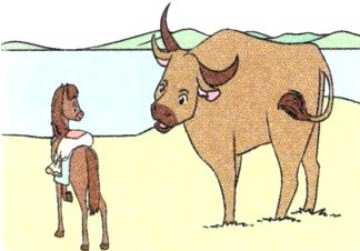 他不知道 怎么办,就问牛 自己能否蹚过去,得到了肯定答