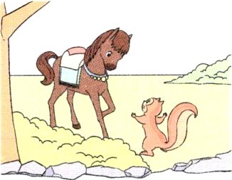 复。他 跑到河边,刚要过河,松鼠 出现拦住了他,告