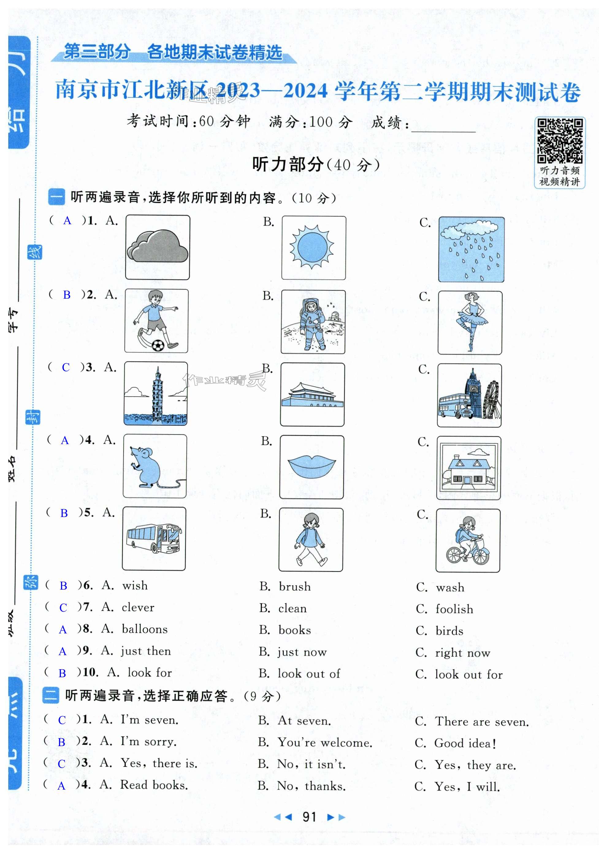 注:目前有些书本章节名称可能整理的还不是很完善,但都是按照顺序排列的,请同学们按照顺序仔细查找。练习册 2025年同步跟踪全程检测六年级英语下册译林版 答案主要是用来给同学们做完题方便对答案用的,请勿直接抄袭。