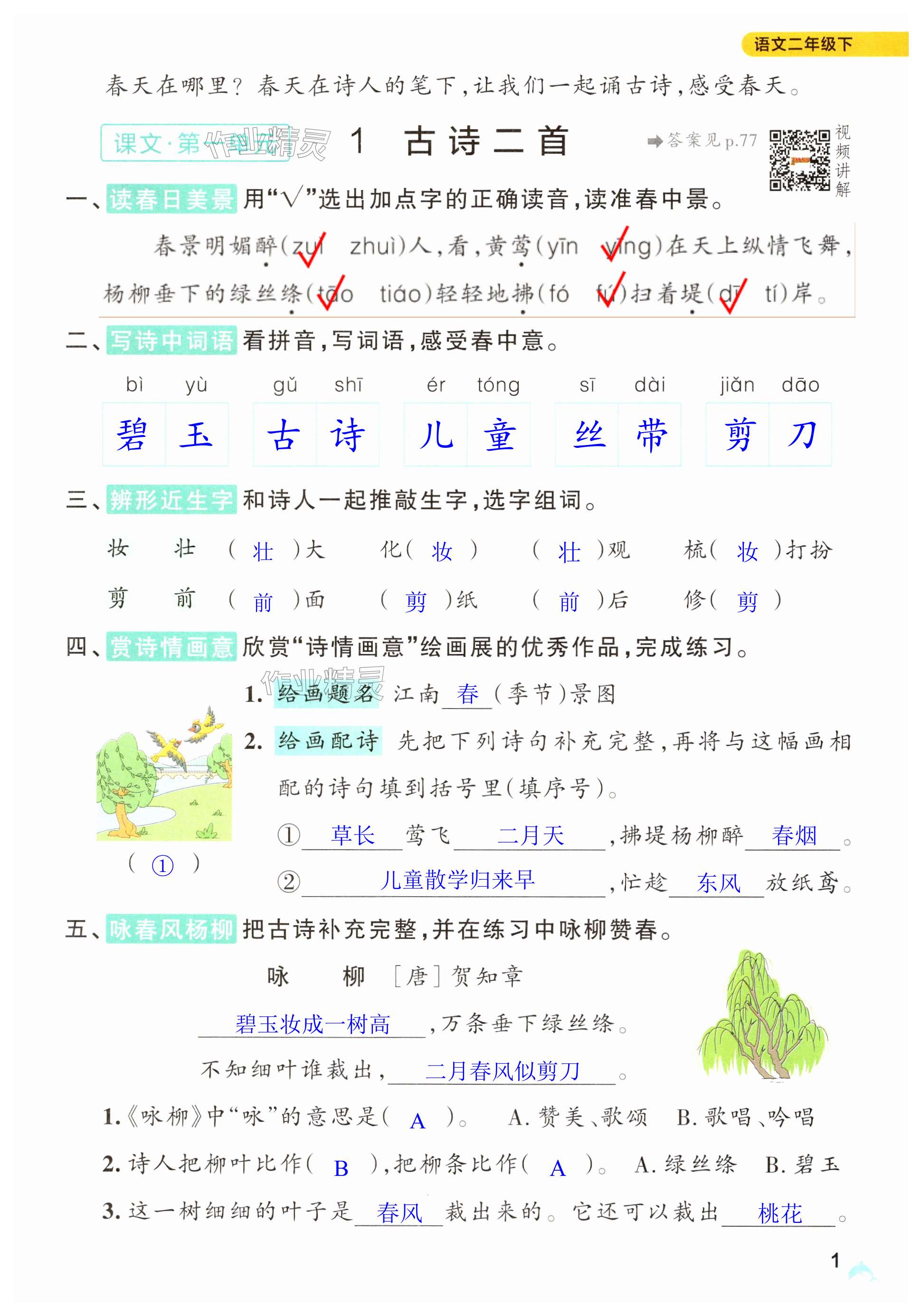 注:目前有些书本章节名称可能整理的还不是很完善,但都是按照顺序排列的,请同学们按照顺序仔细查找。练习册 2025年小学学霸作业本二年级语文下册人教版广东专版 答案主要是用来给同学们做完题方便对答案用的,请勿直接抄袭。