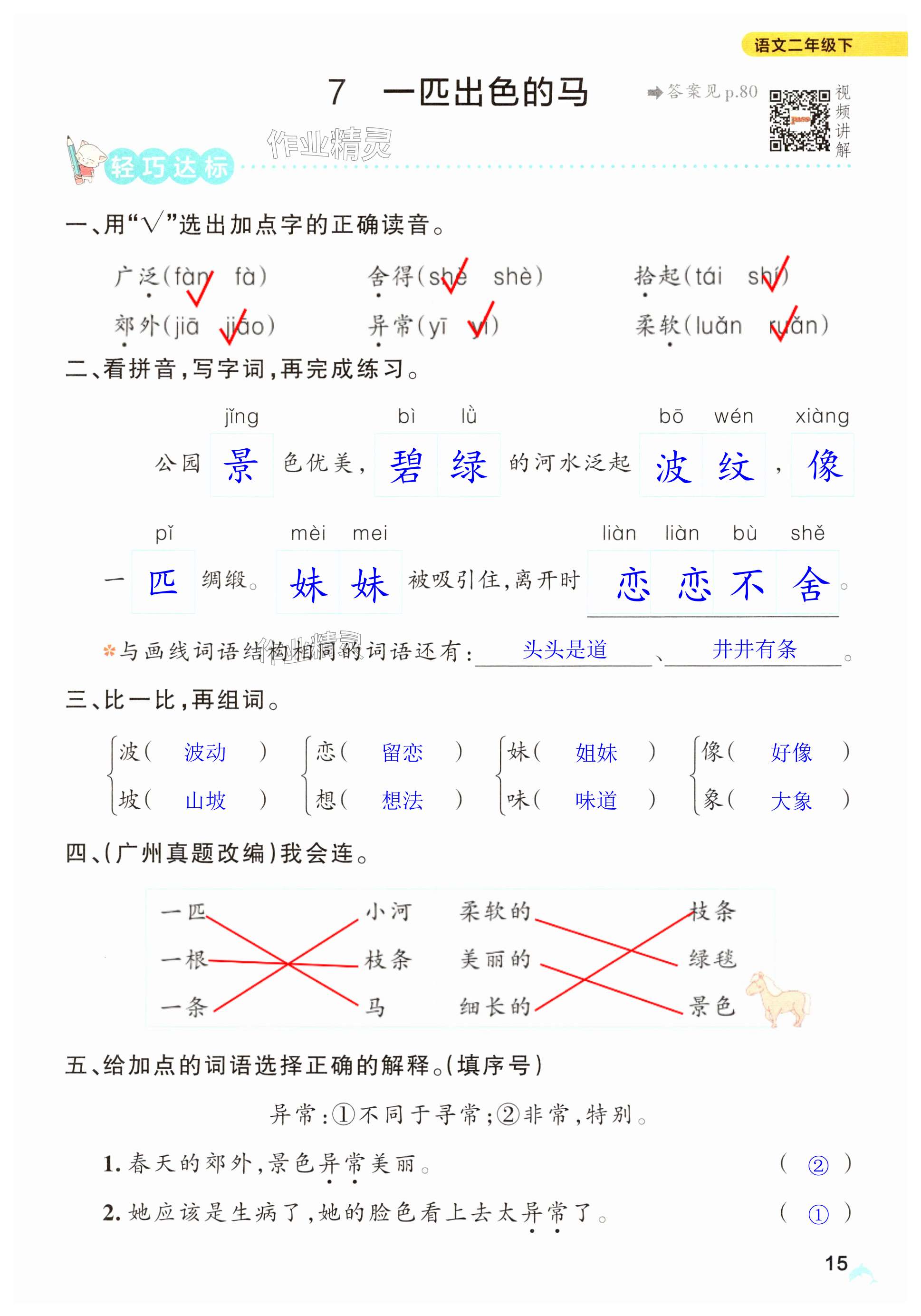 注:目前有些书本章节名称可能整理的还不是很完善,但都是按照顺序排列的,请同学们按照顺序仔细查找。练习册 2025年小学学霸作业本二年级语文下册人教版广东专版 答案主要是用来给同学们做完题方便对答案用的,请勿直接抄袭。