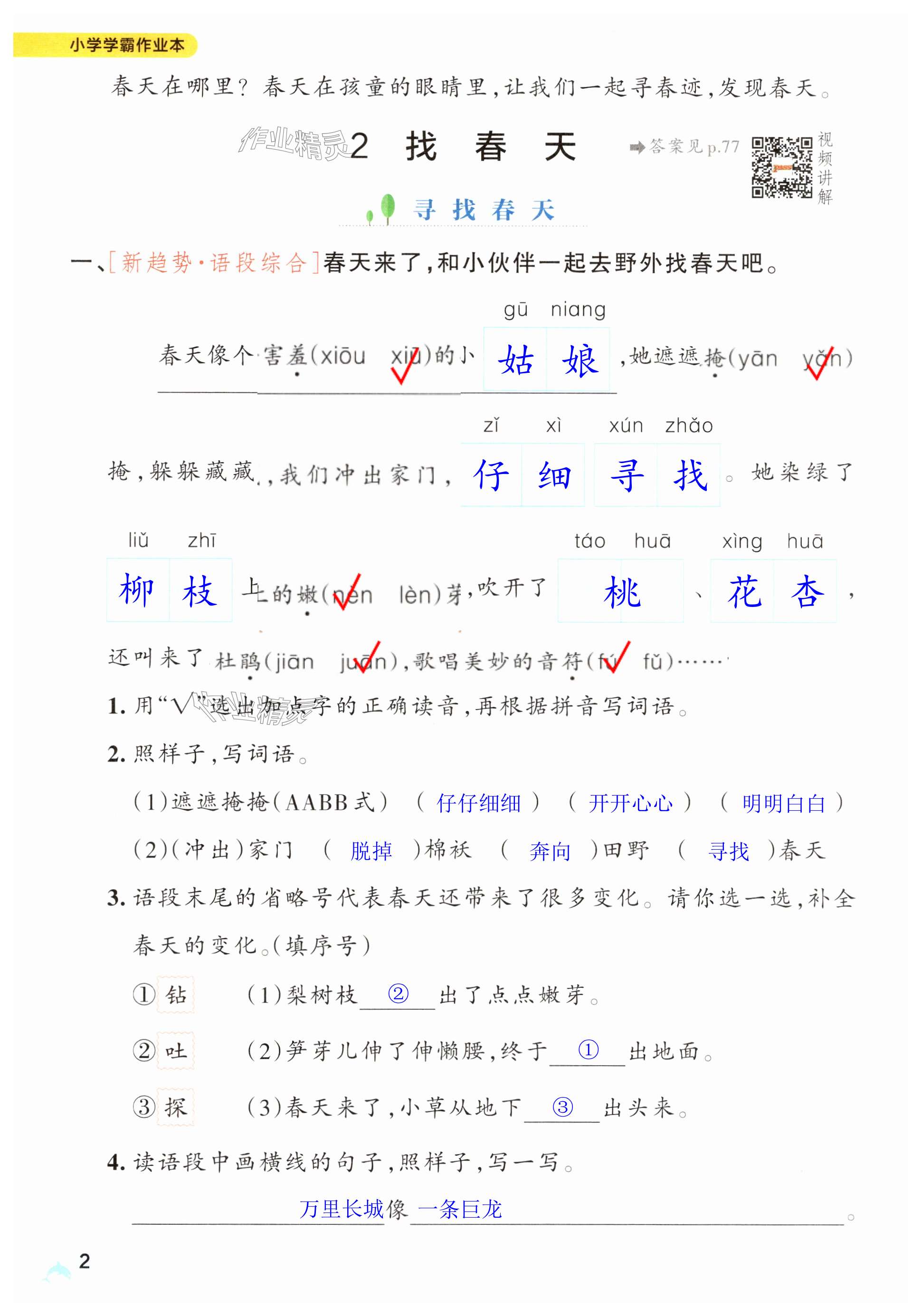 注:目前有些书本章节名称可能整理的还不是很完善,但都是按照顺序排列的,请同学们按照顺序仔细查找。练习册 2025年小学学霸作业本二年级语文下册人教版广东专版 答案主要是用来给同学们做完题方便对答案用的,请勿直接抄袭。