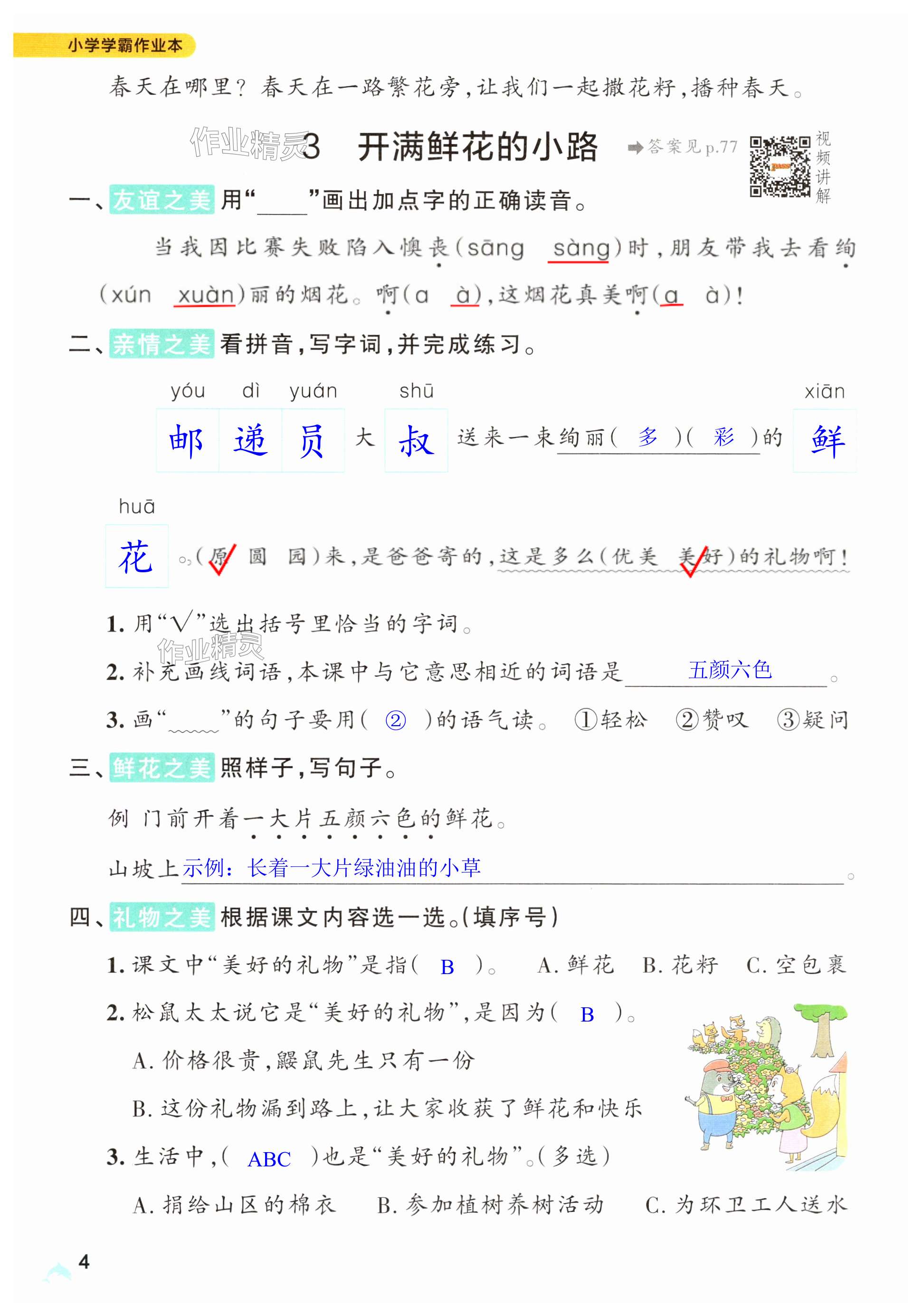 注:目前有些书本章节名称可能整理的还不是很完善,但都是按照顺序排列的,请同学们按照顺序仔细查找。练习册 2025年小学学霸作业本二年级语文下册人教版广东专版 答案主要是用来给同学们做完题方便对答案用的,请勿直接抄袭。