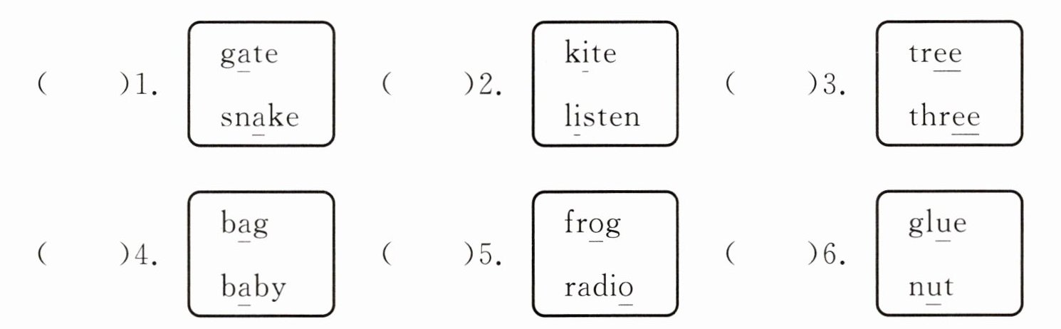 I.判断单词中画线部分的读音是(√/)否(X)相同