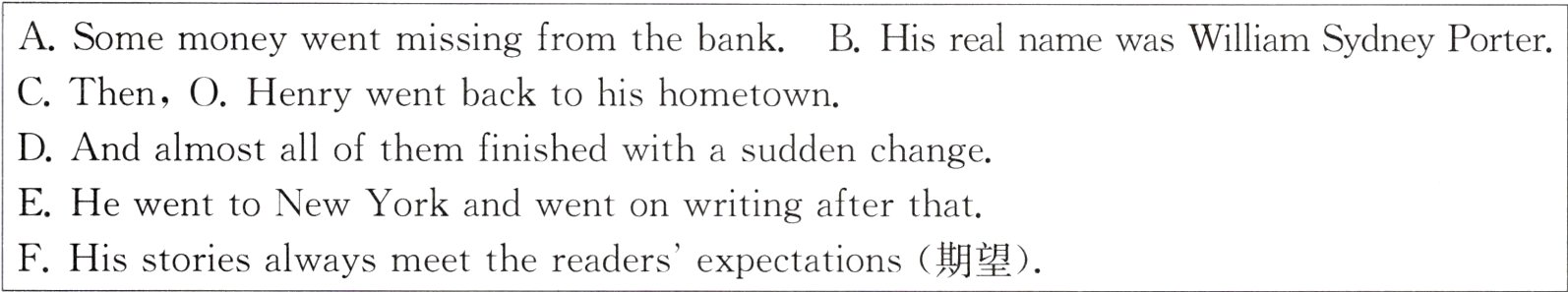 When he was about 20 years old, O. Henry went to Texas. There he tried different jobs. He first worked on a newspaper, and then had a job in a bank. But he got himself into some trouble. (2) ____________ O. Henry was believed to have stolen it, so he was sent to prison.