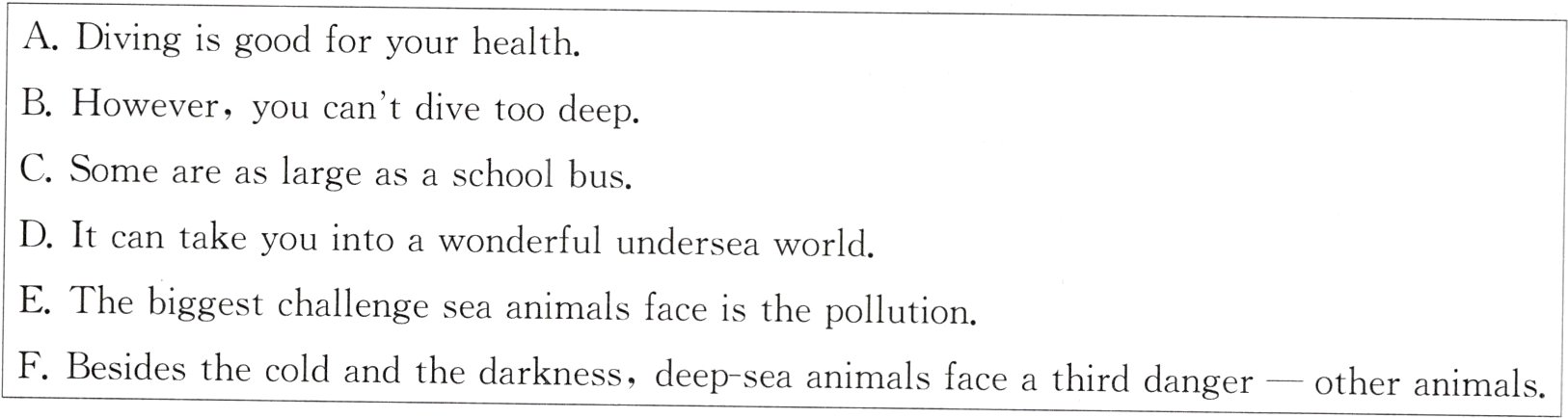 You will find many strange animals in the sea. (2) ______________ Some sea animals give out light in the dark. And others have sharp teeth.