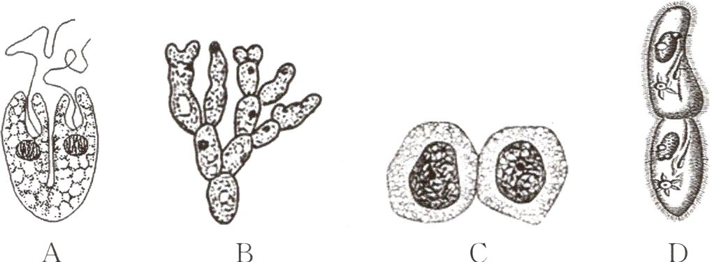 2. 下列图示中,属于酵母菌出芽生殖方式的是 ( )