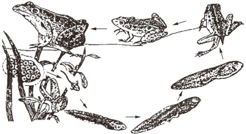 2. 观察下列有关两栖类动物生殖与发育过程的示意图,回答相关问题。