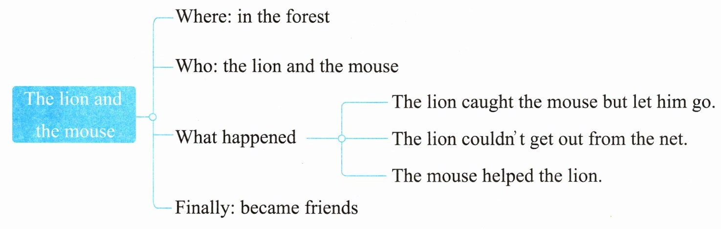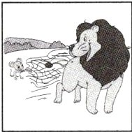 Long long ago, there was a lion in the forest. All the animals were afraid of him. One day, a mouse woke him up. He was angry and caught the mouse. The mouse said quietly to him, "I can help you some day." The lion laughed at the weak mouse. Then he let the mouse go. The next day, two men caught the lion with a large net. The lion couldn't get out from the net. The mouse bit the net and helped the lion. From then on, they became good friends.