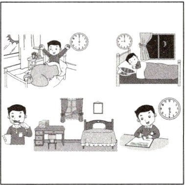 Wang Bing is a good boy. He has many good 1. __________. He gets up 2. __________ in the morning and 3. __________ goes to bed late in the evening. He 4. __________ his teeth every day. He always 5. __________ his things in 6. __________. He usually 7. __________ his homework before dinner. He does 8. __________ at home.