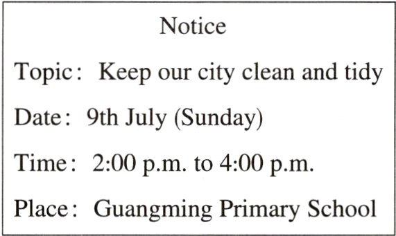 A: There is going to 3. ________ a wonderful lecture(讲座) 4. ________ “Keep our city clean and tidy”. Would you like to go 5. ________ me?