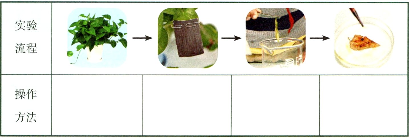 1. 绿叶植物在黑暗处放置24小时,目的是____________________