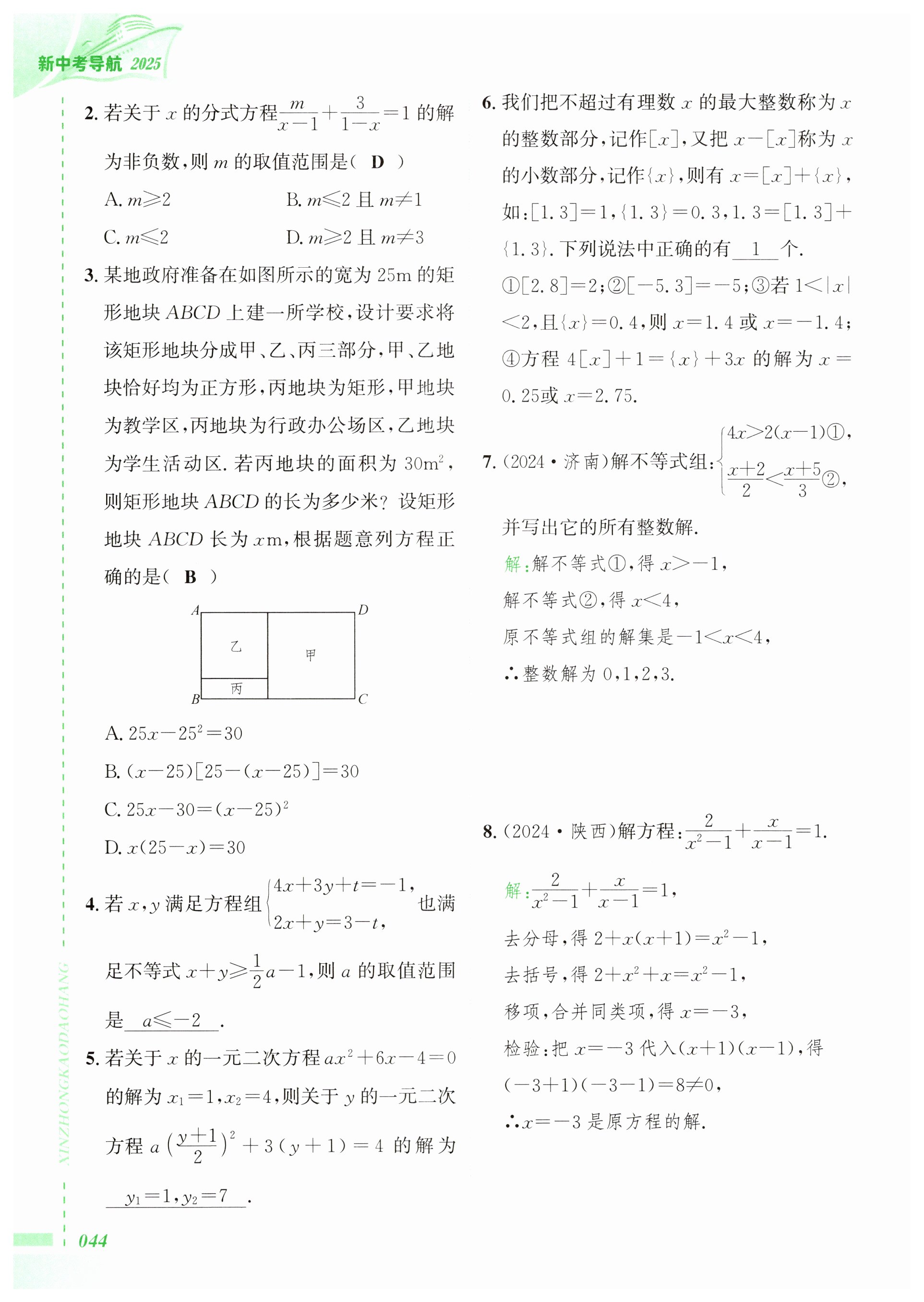 注:目前有些书本章节名称可能整理的还不是很完善,但都是按照顺序排列的,请同学们按照顺序仔细查找。练习册 2025年新中考导航长江出版社数学 答案主要是用来给同学们做完题方便对答案用的,请勿直接抄袭。