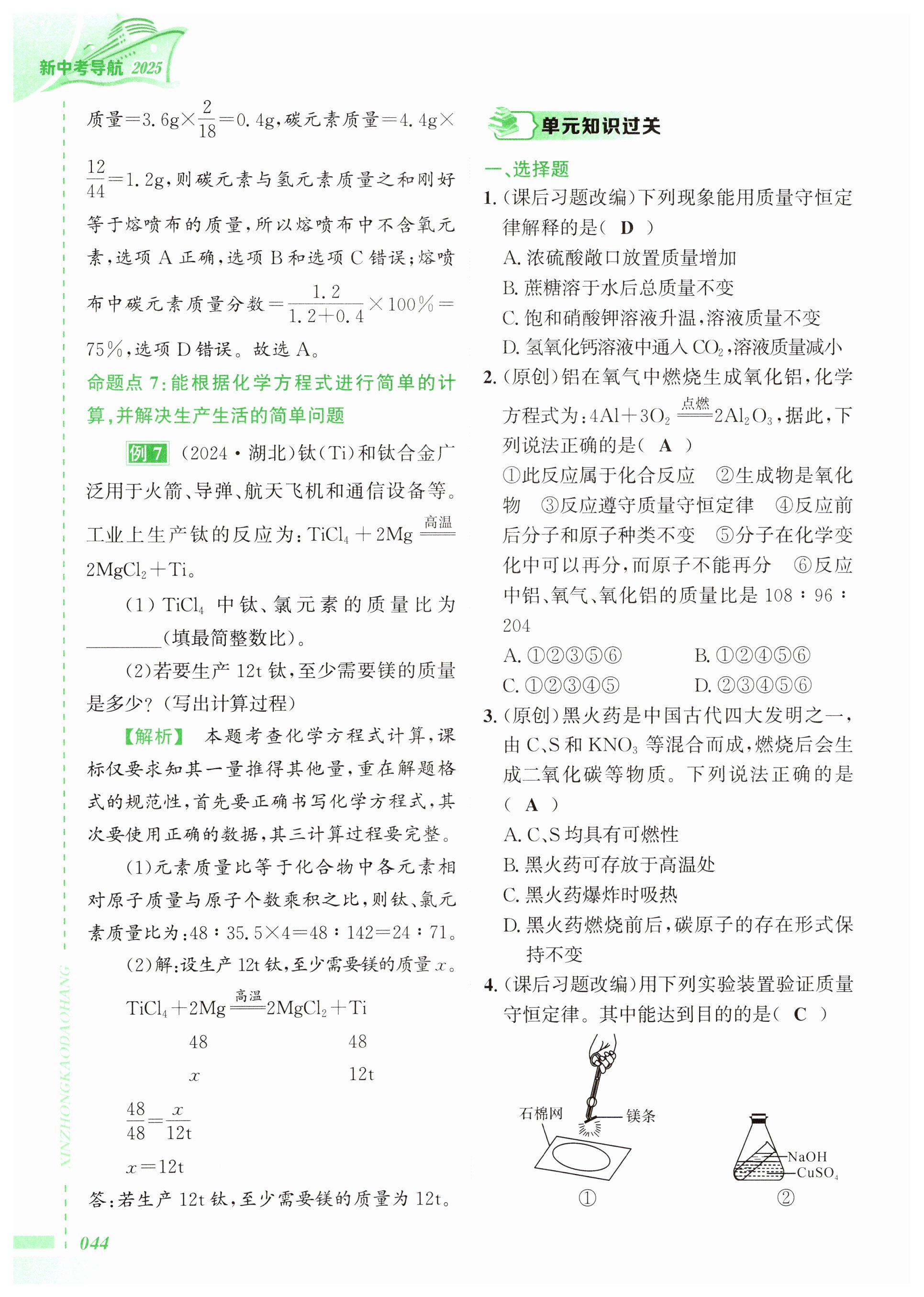 注:目前有些书本章节名称可能整理的还不是很完善,但都是按照顺序排列的,请同学们按照顺序仔细查找。练习册 2025年新中考导航长江出版社化学 答案主要是用来给同学们做完题方便对答案用的,请勿直接抄袭。