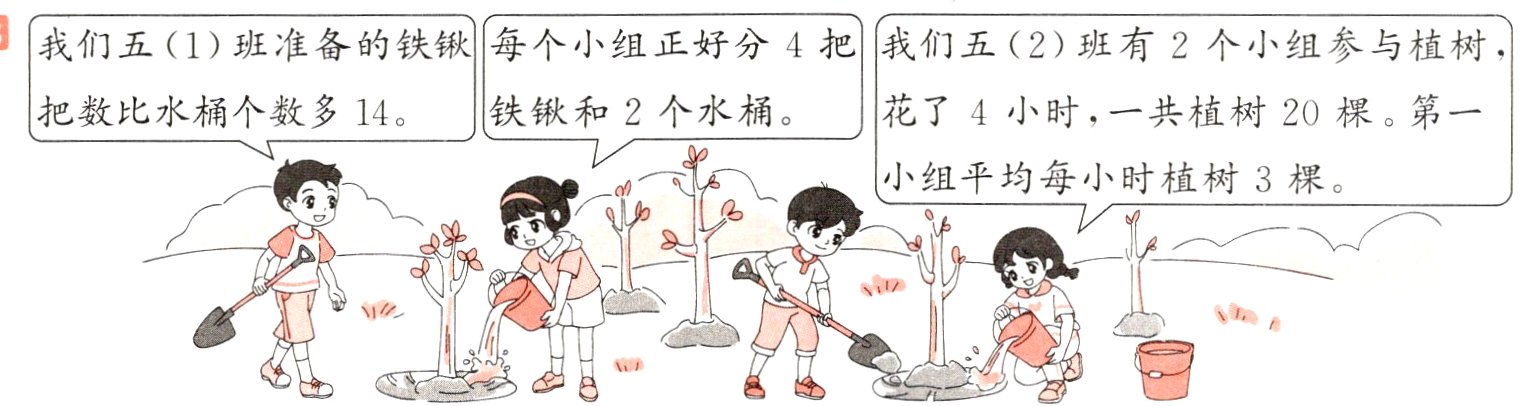 (1)五(1)班一共有多少个小组? (2)五(2)班第二小组平均每小时植树多少棵?