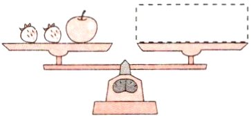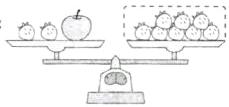 1. 下图中,每个相同水果的质量都相等。要使下面右边的天平保持平衡,请在虚线框里画出相应个数的草莓。(草莓可以用“○”代替)