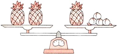 1个菠萝和( )个桃子同样重。 1只鸭子和( )只小鸡同样重。