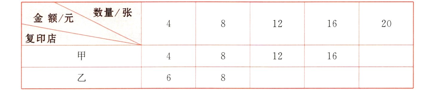 |数量/张 金额/元 复印店|4|8|12|16|20|