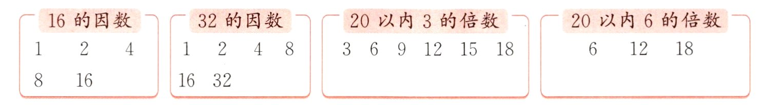 2. 圈一圈16和32的相同的因数,圈一圈20以内3和6的相同的倍数。