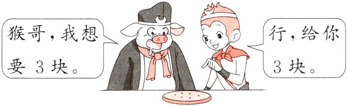 6 一天,孙悟空要将一张饼平均分给师徒4人,每人分得1块。猪八戒看到了,想多吃几块,孙悟空满足了猪八戒的要求,并且师徒4人分得的饼仍同样多。你知道孙悟空是怎么分的吗?