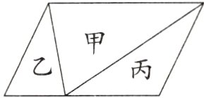 4. 右图是一个平行四边形,图中三角形乙的面积是甲的$\frac{2}{5}$,那么三角形丙的面积是甲的( )。