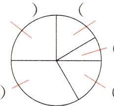 6. 观察下面各图中涂色部分的扇形,完成填空。