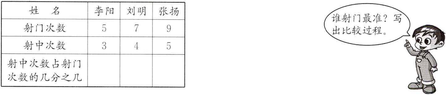 谁射门最准?写出比较过程。
