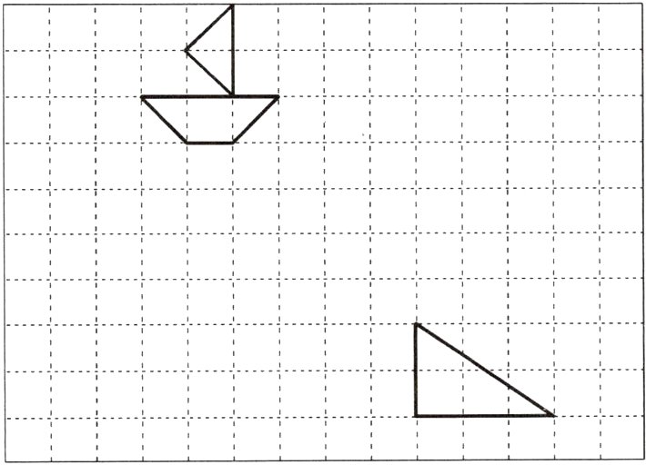 1. (1)将小船图向右平移7格,请画出平移后的图形。