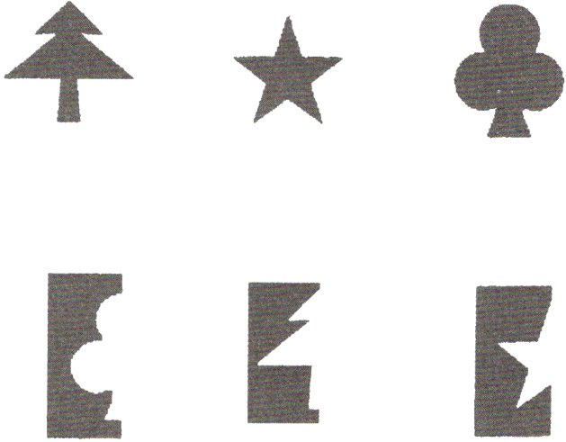 2. 下面的轴对称图形各是从哪张纸上剪下来的?用线连一连。